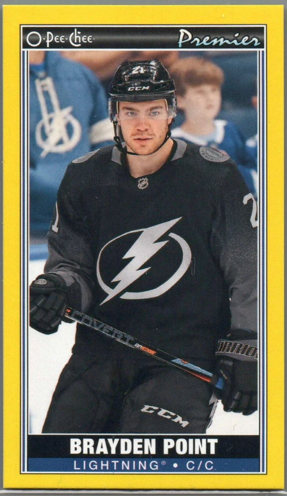 2020/21 OPC Premier Tallboy Yellow Border Brayden Point #P-13Skladem 1 ks35 Kč/ ks29 Kč bez DPH