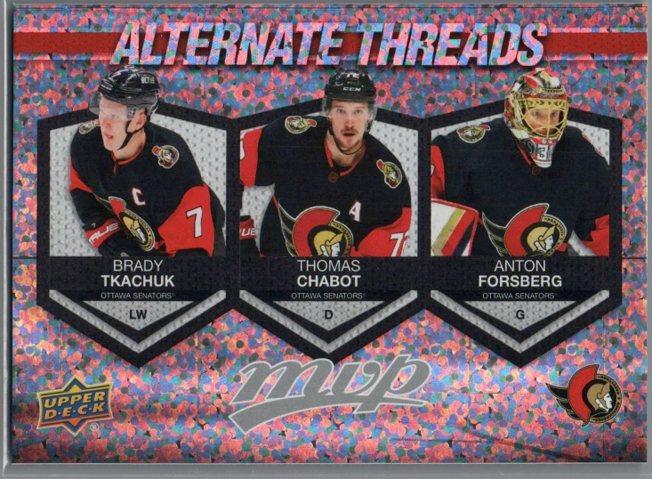 2023/24 Alternate Threads Brady Tkachuk/Thomas Chabot/Anton Forsberg #AT-19Skladem 1 ks50 Kč/ ks41 Kč bez DPH